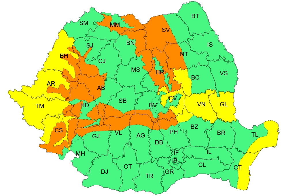 Conform avertizărilor ANM, în perioada 02 ianuarie, 10:30 - 03 ianuarie, 22:00, vor fi consemnate precipitații moderate cantitativ, intensificări ale vântului, viscol la munte, strat de zăpada și polei. Temporar vor fi precipitații în cea mai mare parte a țării și local se vor acumula cantități de apă de 15-30 l/mp. La munte vor predomina ninsorile și se va depune strat de zăpadă consistent (20-50 cm).